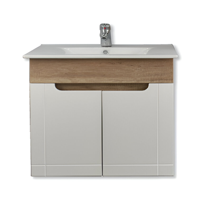 ANDREA ORMARIĆ SA LAVABOOM je upečatljiv i elegantan ormarić sa lavaboom. Savršen za manja kupatila gde svojim dizajnom i dimenzijama može da stvori jednu harmoničnu celinu. Bela boja je boja elegancije i otmenosti, tako da nikada nije pogrešan izbor pri uređenju enterijera, dok boja drveta unosi toplotu u ambijent i prija oku.
