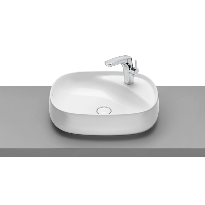 Beyond Lavabo 56x43 A3270B8000 brenda Roca donosi savremenu eleganciju i mekane, organske linije koje oplemenjuju svaku modernu kupatilsku površinu. Zahvaljujući svom kompaktnom, ali funkcionalnom obliku, ovaj lavabo se montira direktno na pult, pružajući utisak luksuza i čistih formi.