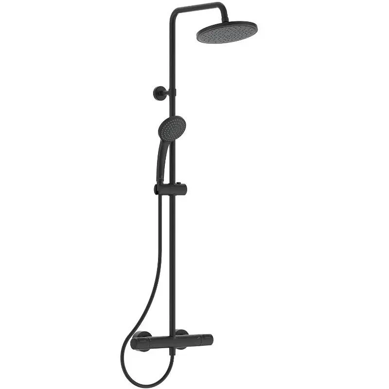 Ceratherm usponski tuš crni A7545XG je inovativni sistem za tuširanje sa termostatskom baterijom. Tuš set I slavina za kadu se sastoji od slavine, plastične tuš ruže, creva, ručice tuša I zidnog nosača. Visokokvalitetan dizajn ove skupine tuševa idealan je za svakoga tko traži visokokvalitetni proizvod. Slavina za kadu je jednoručna zidna slavina koja ima mješač I prebacivač na tuš. Tuš ima limitator protoka vode od 12 litara po minutu.