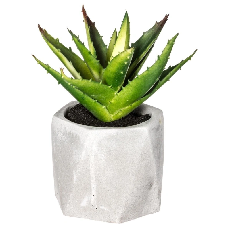 Ova dekoracija je idealna za police, ormariće, prozorske daske i komode – svuda gde je potreban dašak zelenila bez zalivanja. PVC materijal biljke je realističan na dodir i izgled, dok je saksija izrađena od cementa za dodatnu stabilnost i teksturalni kontrast.
