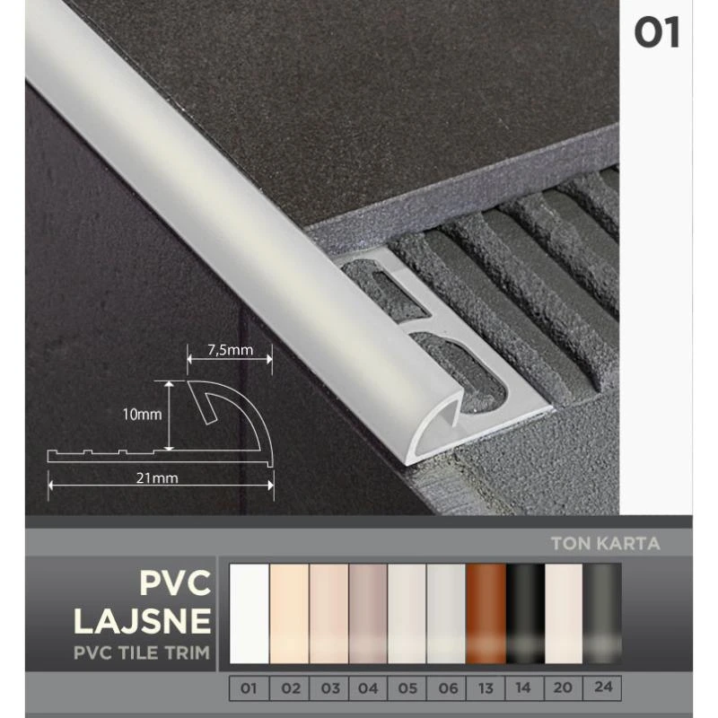 Ova lajsna je jednostavna za upotrebu i omogućava profesionalan završetak keramičkih površina. Može se koristiti u različitim prostorijama kao što su kuhinje, kupatila, hodnici i druge prostorije gde je potrebna zaštita ivica keramike. Izrađena je od kvalitetne plastike koja je otporna na habanje i lako se čisti, pružajući dugotrajnu zaštitu i estetski izgled.