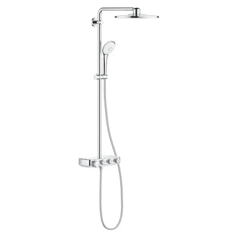 Inovativna GROHE SmartControl tehnologija vam omogućava da prebacujete između i kombinujete glavni i ručni tuš, kao i šeme prskanja i da podesite količinu vode pritiskom na dugme. Takođe je lako uštedeti vodu jednostavnim okretanjem jačine mlaza sa punog protoka na EcoJoi.