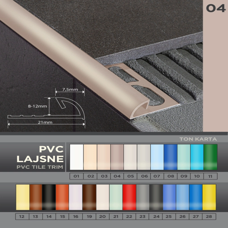 Ova bež lajsna ima vrlo važnu funkciju u uređenju prostora u kojima se postavlja keramika. Njegovom upotrebom pokriva se spoj između dve pločice, štiteći ih od vlage i prljavštine. Osim funkcionalne, ova lajsna ima i estetsku ulogu jer svojom bež bojom doprinosi celokupnom izgledu prostora.