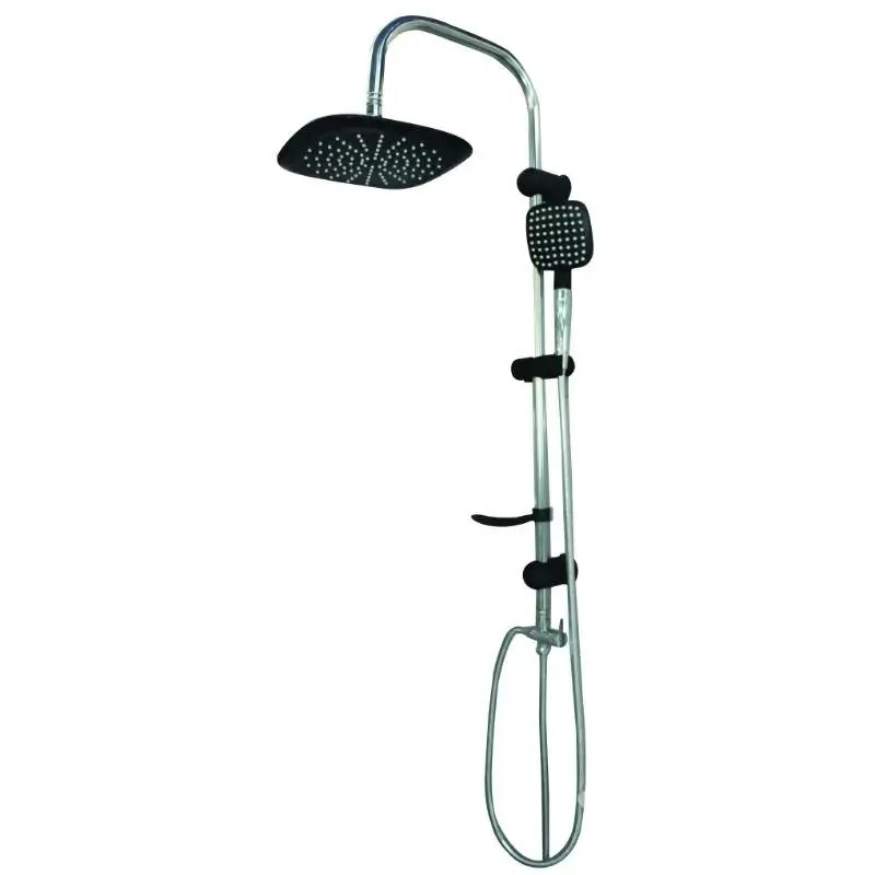 Ovaj tuš sistem kombinuje klasičnu hromiranu završnu obradu sa upečatljivim crnim detaljima, čime se lako uklapa u savremene i industrijske enterijere. Usponska šipka omogućava stabilno i pravilno pozicioniranje tuš ručice i gornjeg tuša, dok praktičan raspored elemenata doprinosi udobnijem korišćenju tokom svakog tuširanja.