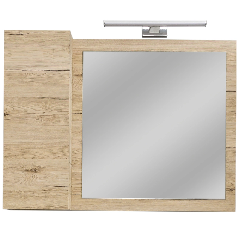 Molto ogledalo sa ormarićem i rasvetom je izuzetno kompaktno i praktično. Savršeno je za manje kupatilske prostore. Osim što nudi funkcionalno ogledalo, dolazi s ormarićem za organizovanje sitnih kupatilskih potrepština. Prirodna boja drveta dodaje mu dodatnu notu sofisticiranosti. Napravljeno je od kvalitetne iverice. Zahvaljujući LED rasveti otpornoj na vlagu, olakšava svakodnevne aktivnosti u kupatilu i čini ih prijatnijim.