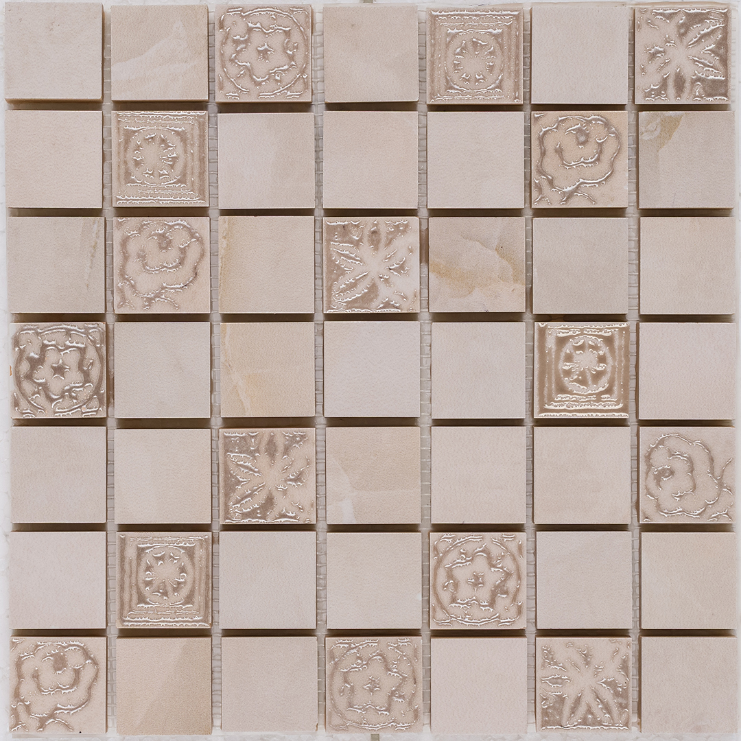 Onyx Beige Mosaic 25x25 je kao komad arhitekture sa Mediterana koji si preneo direktno u svoj prostor. Kombinacija rustičnih bež tonova i dekorativnih reljefnih šara stvara mozaik koji izgleda kao da je iskopan iz drevnog dvorišta, ali sa potpuno savremenim šmekom.