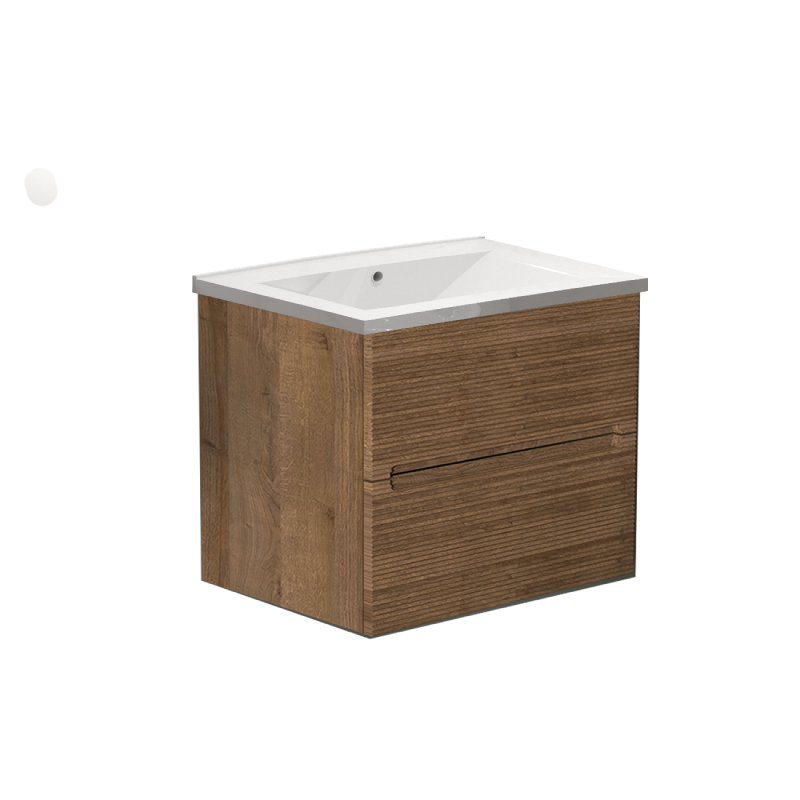 Dolazi sa gotovim keramičkim lavaboom koji zna svoje mesto — i ne skreće pažnju sa toplih tonova drveta ispod. Dva duboka fiokasta prostora diskretno sakrivaju ceo tvoj kupatilski arsenal: četkice, peškiri, planovi za vikend. Nema štrčanja, nema kiča – samo čist, uspravan stav. Savršeno za manja kupatila koja hoće da izgledaju kao da su veća nego što jesu.