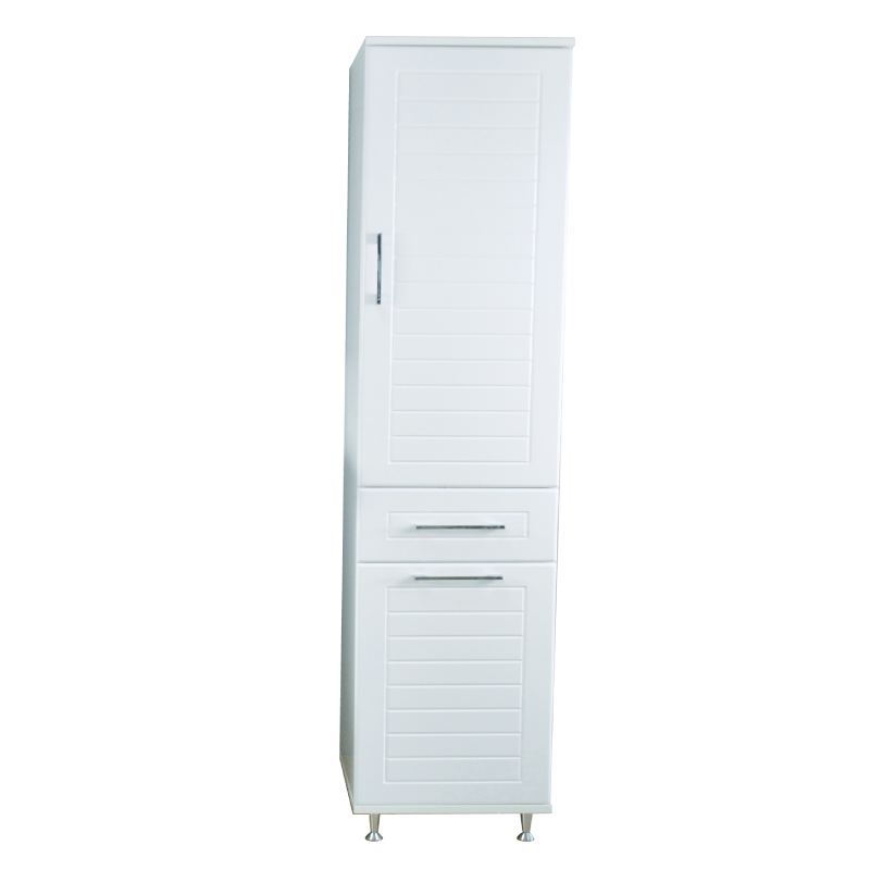 Vertikale za stvari su moderno i praktično rešenje, i polako se nameću kao nezaobilazan deo kupatilskog nameštaja, koje moramo imati u našem kupatilu. Pored elegantnog izgleda koji će obogatiti svaki prostor, ističe se i njihova funkcionalnost – idealne su za odlaganje peškira, kozmetike i svih onih sitnica koje su ležale razbacane na svakom koraku. ARIA VERTIKALA SA POLICAMA je visoki, moderan, samostojeći ormarić sa jednim vratima i policama, jednom fiokom, i prostorom za prljav veš, koji pruža mnoštvo prostora za skladištenje stvari.