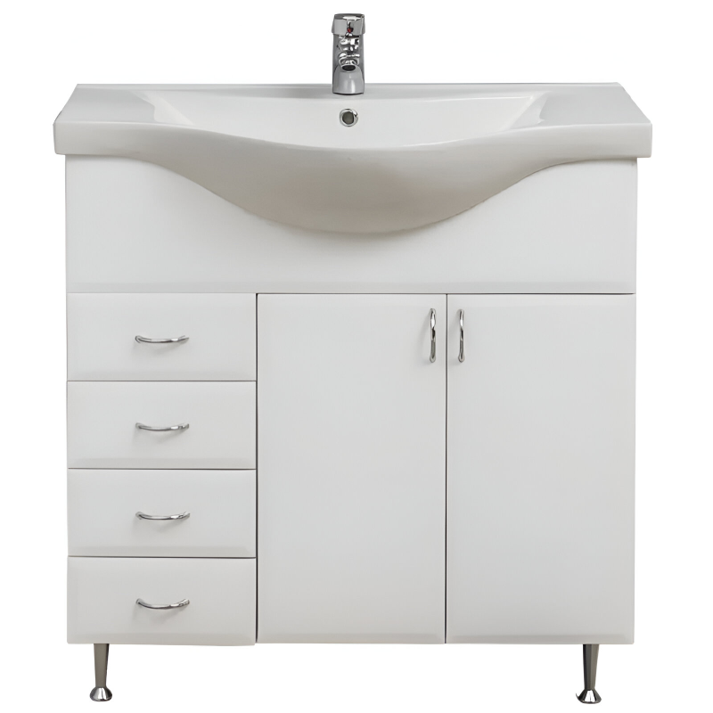 Izrađen je od kvalitetnog medijapana, sa oborenim ivicama, a bela boja mu daje unikatan izgled, zbog kog će se sa lakoćom uklopiti u svaki enterijer. Lavabo je izrađen od polimermera, ili takozvanog veštačkog mermera velike otpornosti. Izuzetna bela boja će pružiti osećaj blještavila i svežine, samim tim će učiniti da kupatilo uvek izgleda mnogo prijatije i čistije.