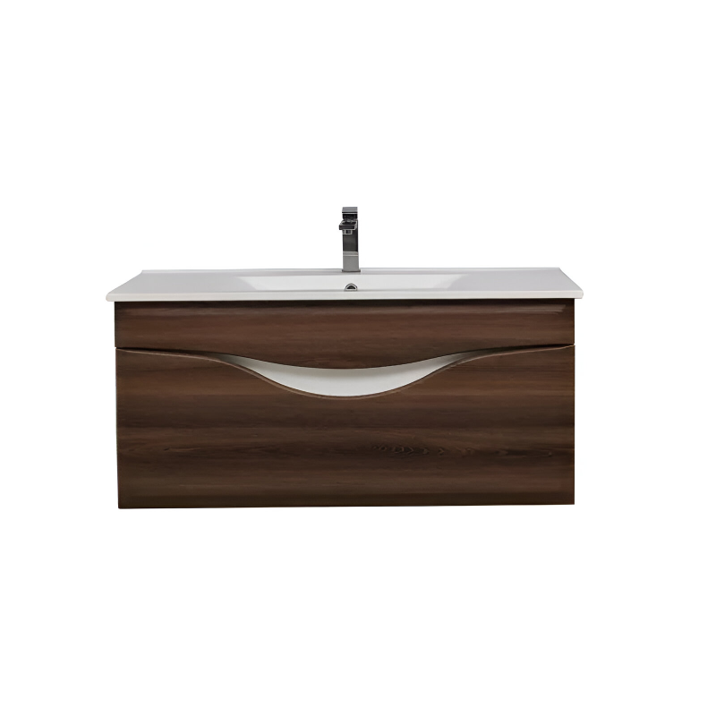 Upotreba boje prirodnog drveta omogućava ESSENZA Ormariću sa lavaboom (100BX) da se sjajno uklopi u svako kupatilo, bez obzira na preostale elemente. Boja drveta dodaje prirodan izgled i eleganciju prostoru, čineći vaše kupatilo jedinstvenim. Izrađen od visokokvalitetnog medijapana, ovaj ormarić ima fioku ispod lavaboa sa klizačima za potpuno izvlačenje i maksimalnu funkcionalnost. Sporo-zatvarajući mehanizam osigurava izbegavanje oštećenja. Keramički lavabo je izuzetno otporan na oštećenja, hemikalije i toplotu.