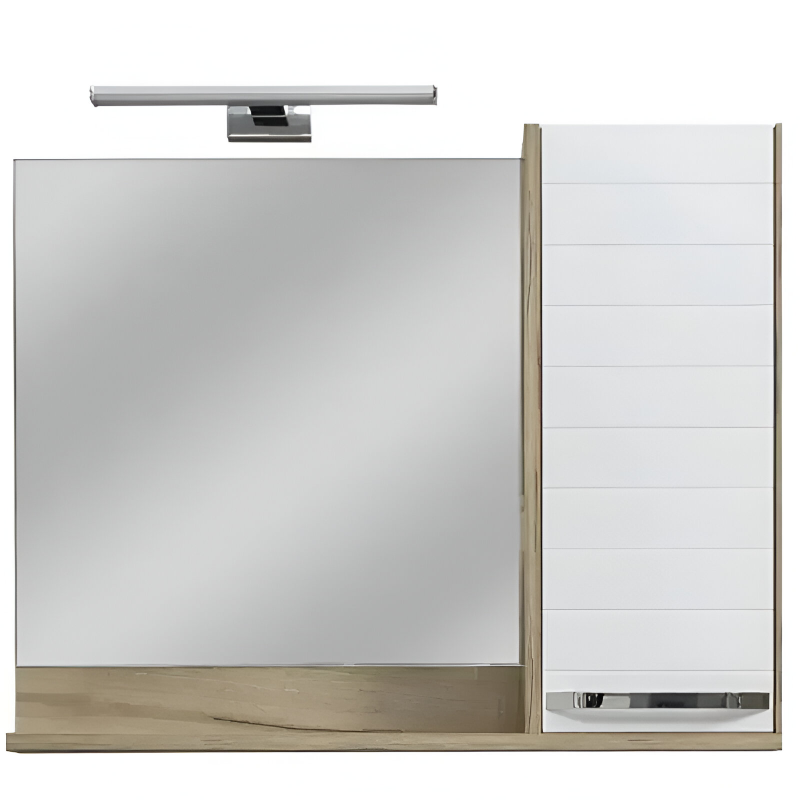 Sara ogledalo sa ormarićem i rasvetom se savršeno uklapa u kupatila svih veličina i stilova uređenja. U unutrašnjosti ima dovoljno mesta za odlaganje kupatilskih sitnica, što u mnogome pomaže boljem organizovanju i čistoći kupatila. Bela boja mu daje eleganciju i lako se uklapa u svaki enterijer, a boja drveta mu daje izuzetan, prirodni šmek. Izrađeno je od najkvalitetnijeg medijapana i iverice. Montira se na zid, a vrata poseduju sporo-zatvarajući mehanizam, kako bi se sprečila oštećenja. Zahvaljujući vlago-otpornom LED osvetljenju, olakšaće Vam svakodnevnu rutinu i učiniti obaveze mnogo lakšim i prijatnijim.
