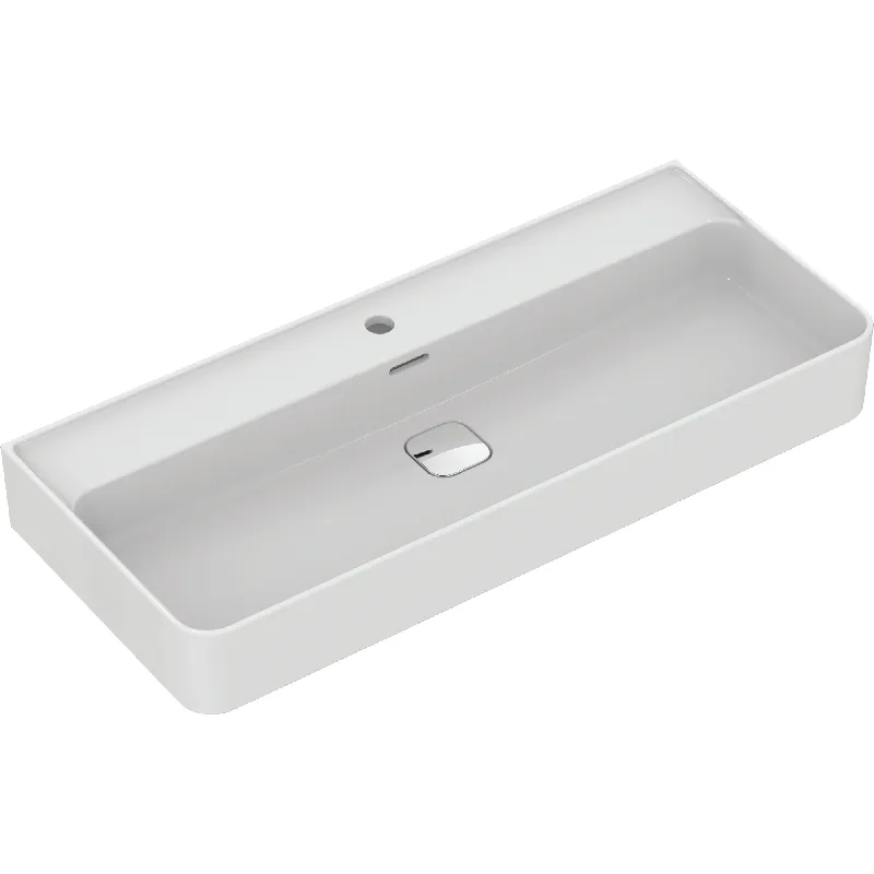 Strada II lavabo T300201 je pravougaoni lavabo velikog formata. Karakteriše ga bjela boja i vrhunski porcelan. Dolazi bez stuba, što vam daje mogucnost da ga prilagodite sopstvenim potrebama ili viziji svog kupatila. Kao konzolni lavabo, može biti montiran na zid.