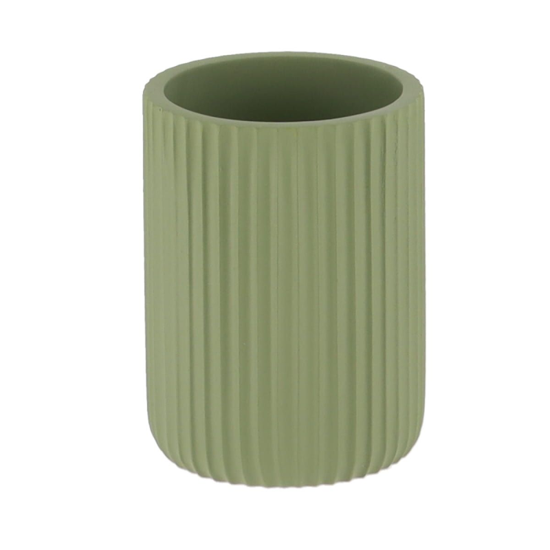 Tendance čaša za četkice u maslinasto zelenoj boji i sa diskretnim vertikalnim prugama idealno se uklapa u moderno ili prirodno uređen enterijer. Napravljena od kvalitetnog poliresina, ova čaša je otporna na vlagu i plesan.