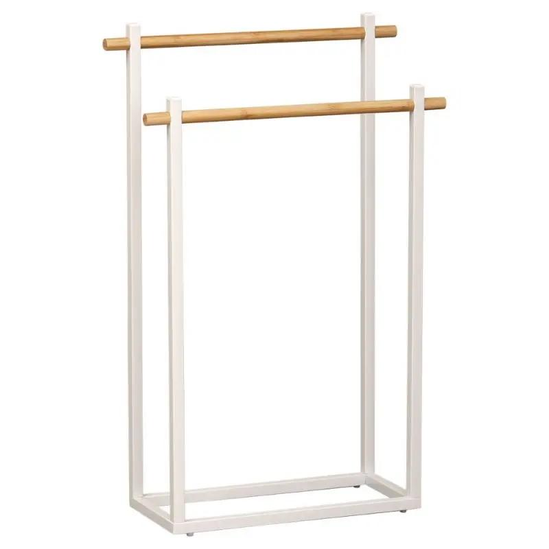 TENDANCE držač pašiva sa dve prečke – 53×32×120 cm (95164210) je samostojeći stalak izrađen od kombinacije bambusa i metala, sa dvostrukim prečkama za odlaganje peškira, garderobe ili tekstila. Zahvaljujući kompaktnim dimenzijama, lako se uklapa u kupatilo, spavaću sobu, hodnik ili garderober.