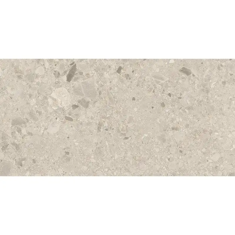 Mat završna obrada omogućava prirodan utisak i prijatan dodir, dok veliki format 60x120 cm smanjuje broj fuga i doprinosi urednosti i prostranosti. Terrazzo Beige je i otporna na habanje, vlagu i prljavštinu, pa je praktičan izbor za svakodnevnu upotrebu – čak i u frekventnim prostorima.