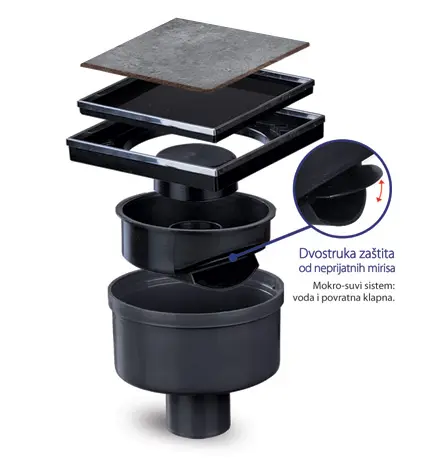 - Mokro-suvi sistem – integrisana povratna klapna i vodeni čep