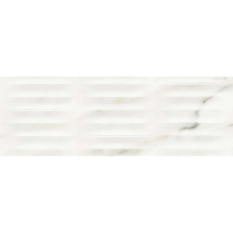 Sa prefinjenom imitacijom belog mermera i reljefnom teksturom koja hvata svetlost na poseban način, ove pločice transformišu svaku prostoriju u umetničko delo.